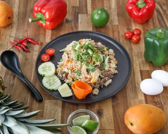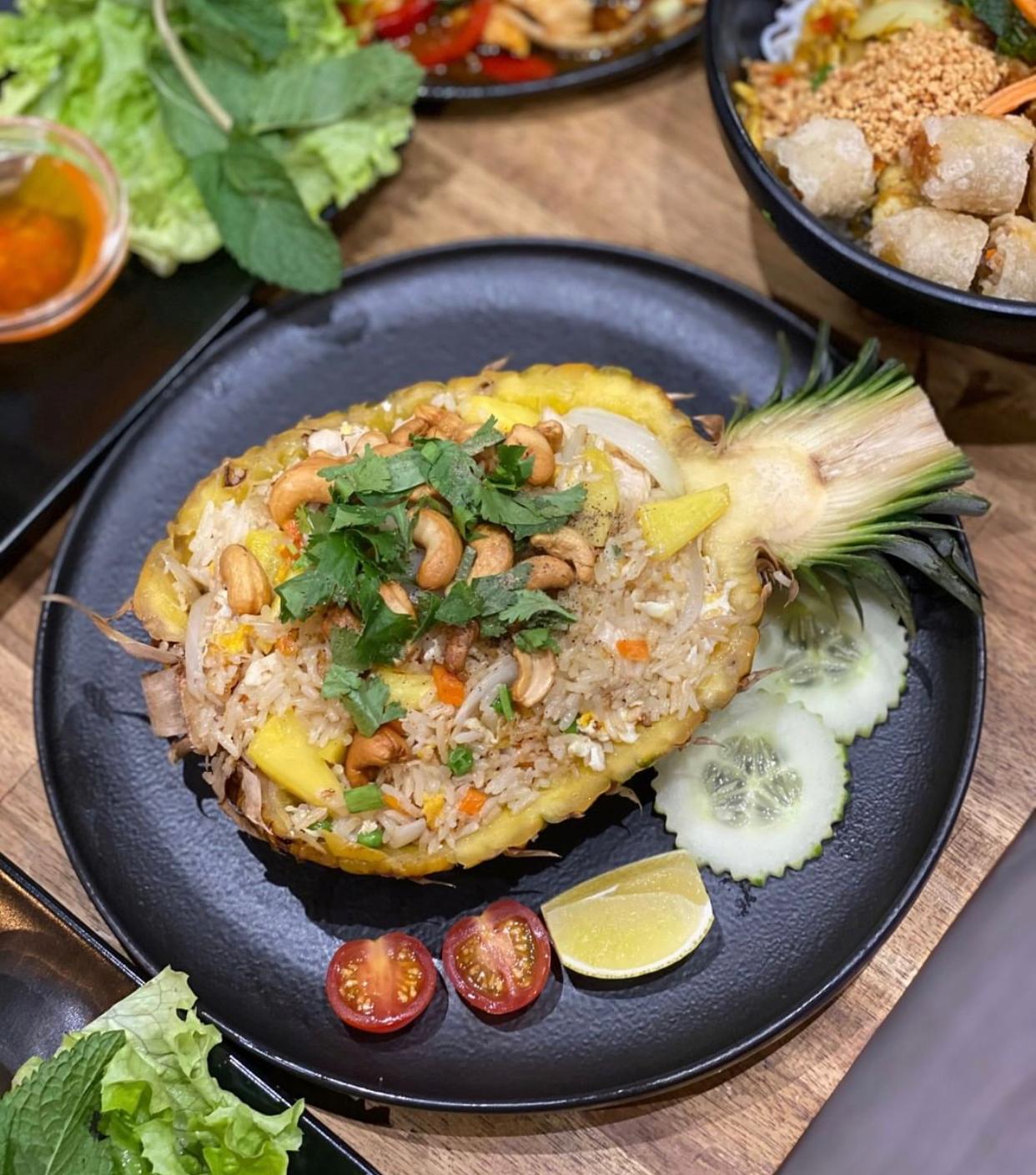 Riz sauté servit dans un ananas avec des morceaux d ananas