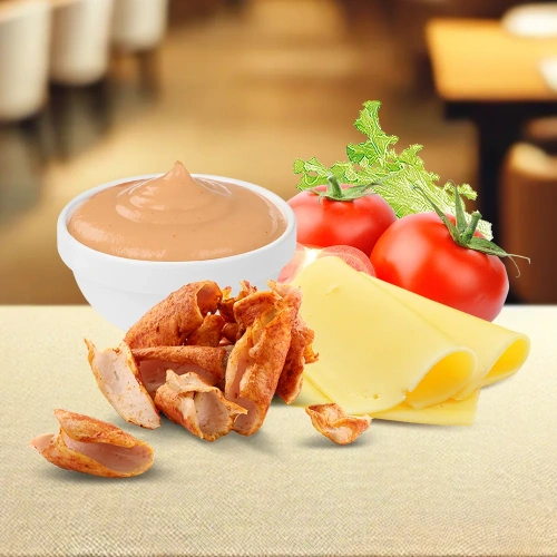6,50 €Chicken steak, choukchouka, cheddar, sauce Algérienne et Gruyère